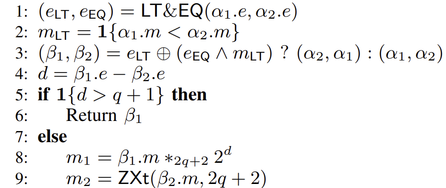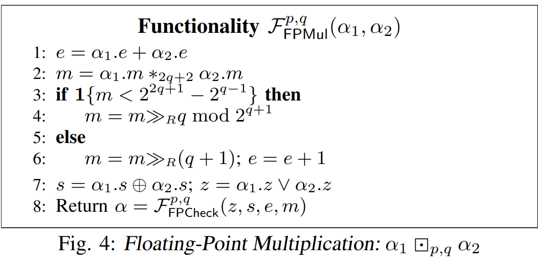 can be implemented using public-key cryptography or similar methods, with a communication cost of per instance; using IKNP, this can be reduced to . - Addition and scalar multiplication based on 2-party additive secret sharing are almost free (no communication overhead).